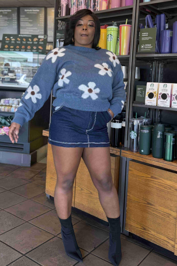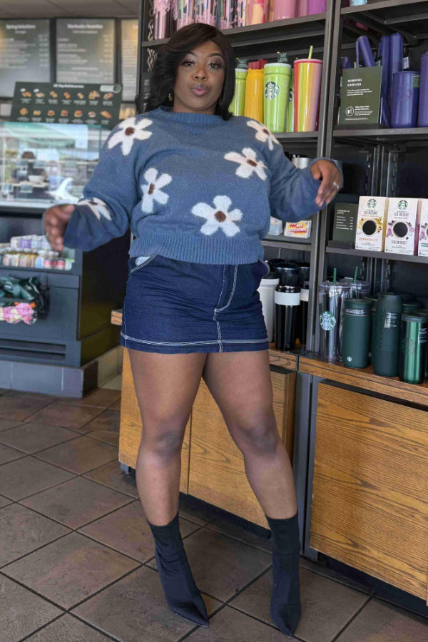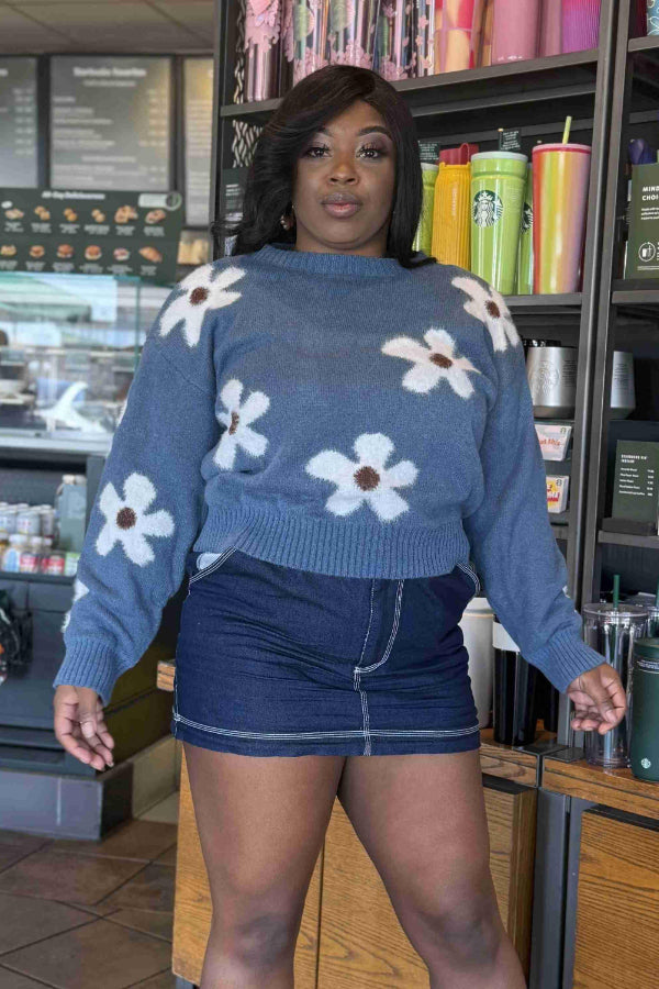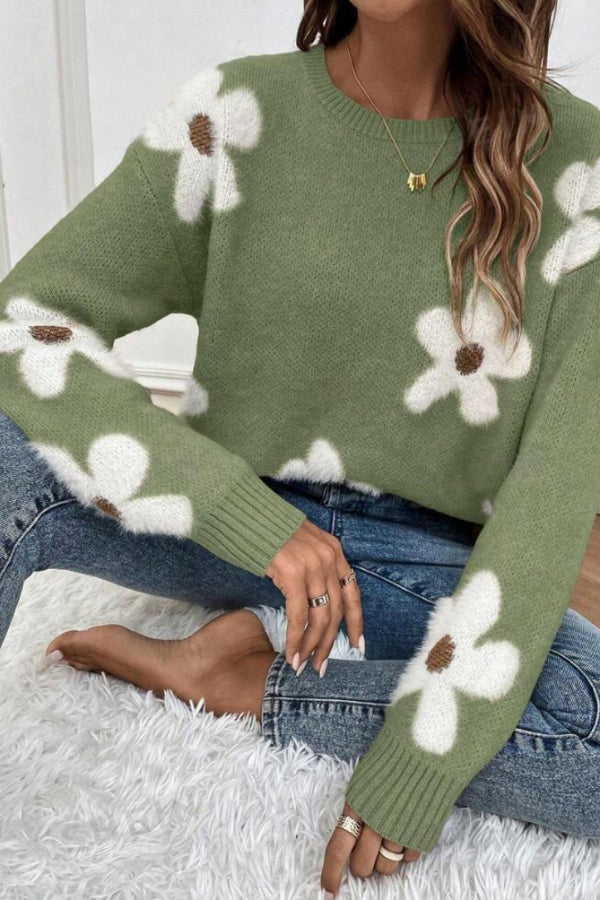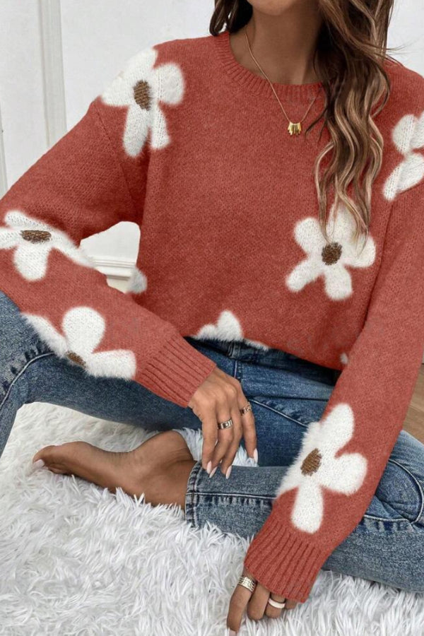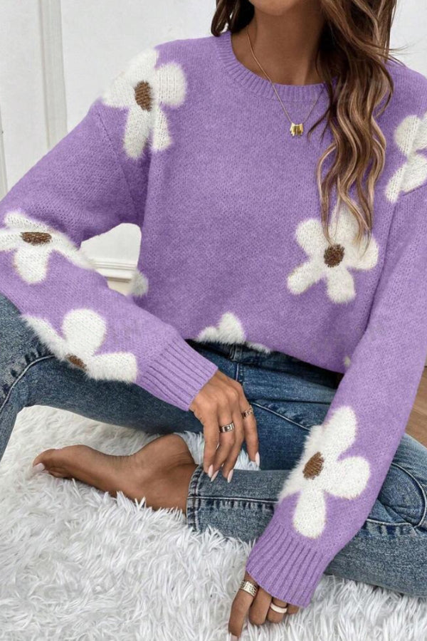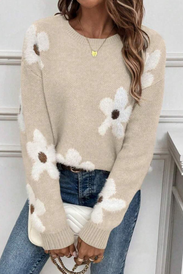 Jacquard Round Neck Sweater: Long Sleeve Fashion Fall Style Keywords: jacquard sweater, round neck knit, long sleeve sweater, fall fashion, trendy knitwear, autumn sweater |