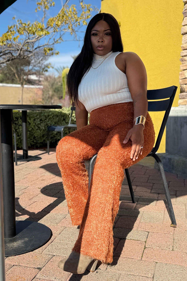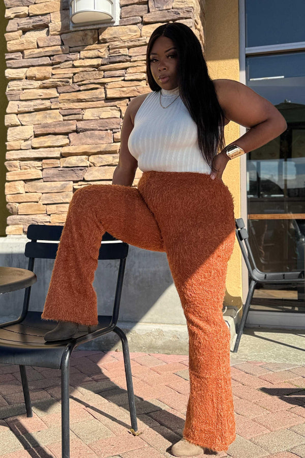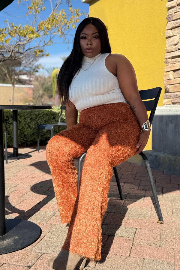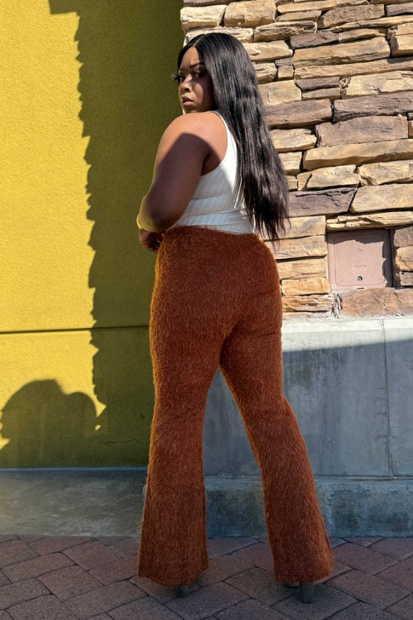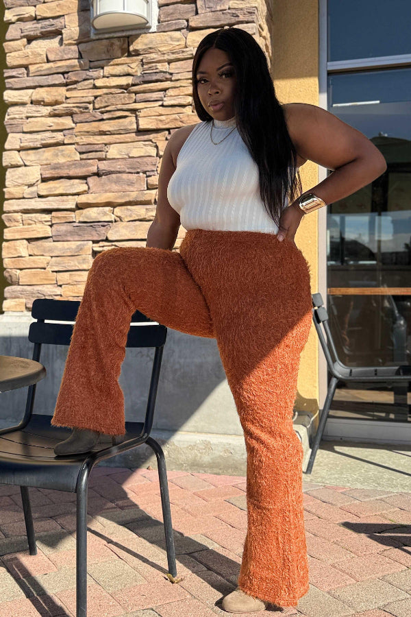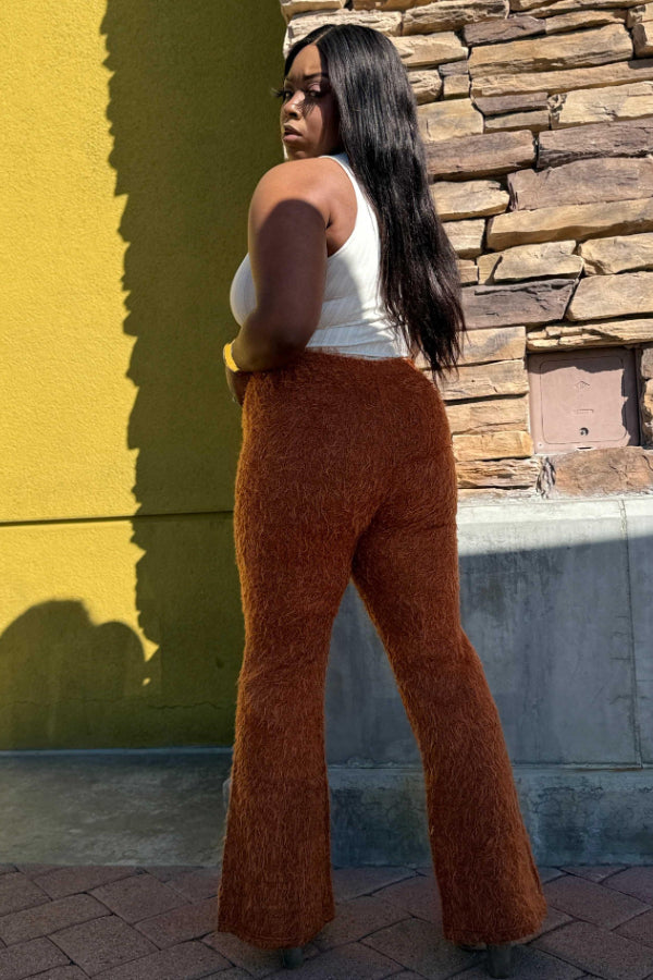 Knitted Flared Pants: Fashionable Fleece-Lined Casual Trousers Keywords: knitted flared pants, fleece-lined leggings, fashion-forward trousers, winter casual pants, trendy knit pants, comfortable outfit |