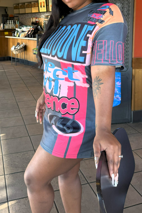 Letter Print Short-Sleeve T-Shirt: Loose-Fit Streetwear Trend Keywords: letter print tee, oversized streetwear, casual graphic t-shirt, trendy fashion, hip-hop style, relaxed fit tee, urban fashion |