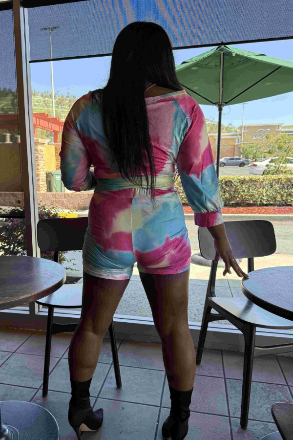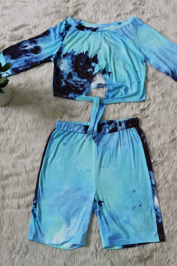 Off-Shoulder Printed Set with Tie Design