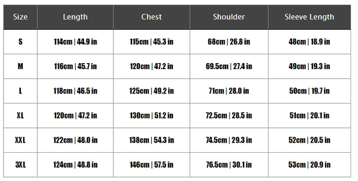 S, M, L, XL, 2XL, 3XL |