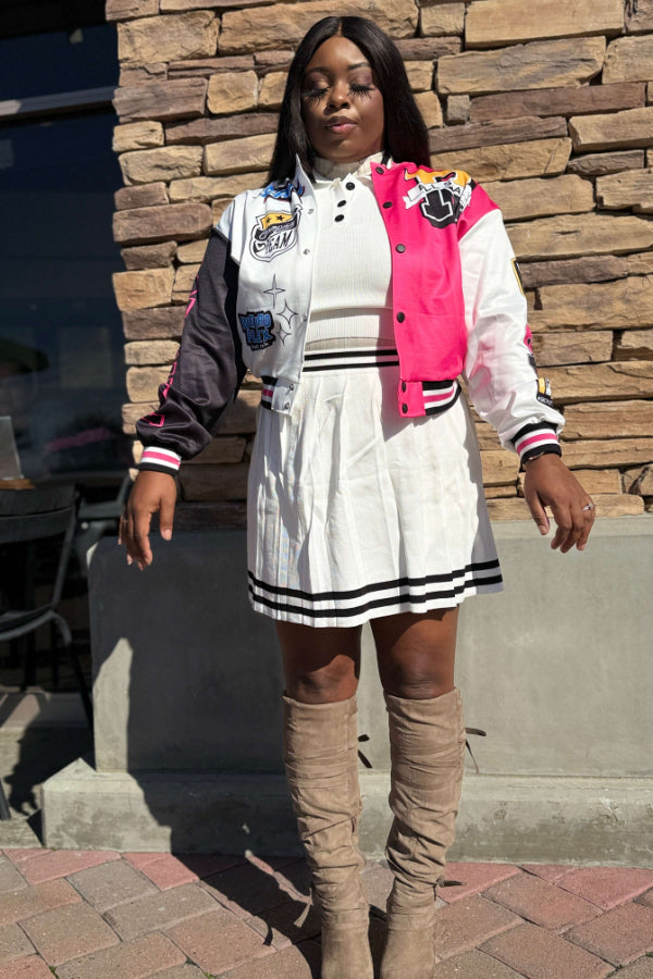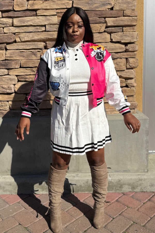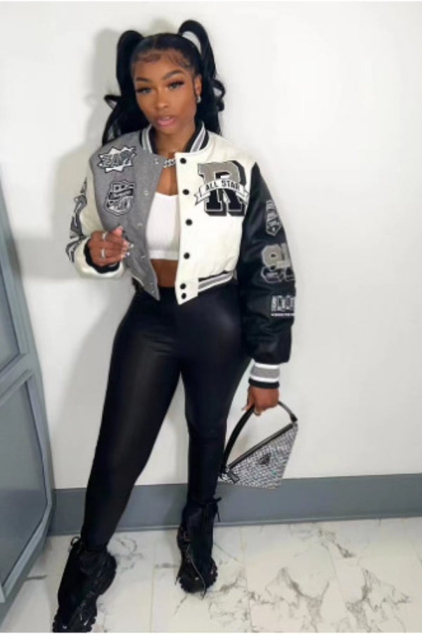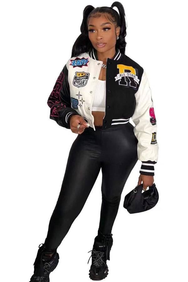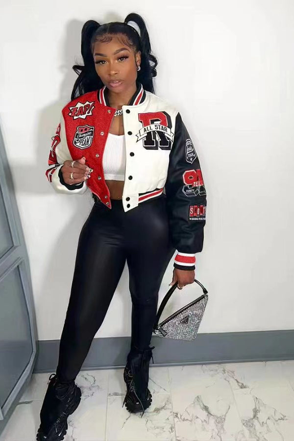 Ribbed Baseball Jacket: Casual Spring-Autumn New Trend Keywords: ribbed baseball jacket, sporty bomber coat, casual spring wear, trendy varsity jacket, streetwear outerwear, lightweight jacket |