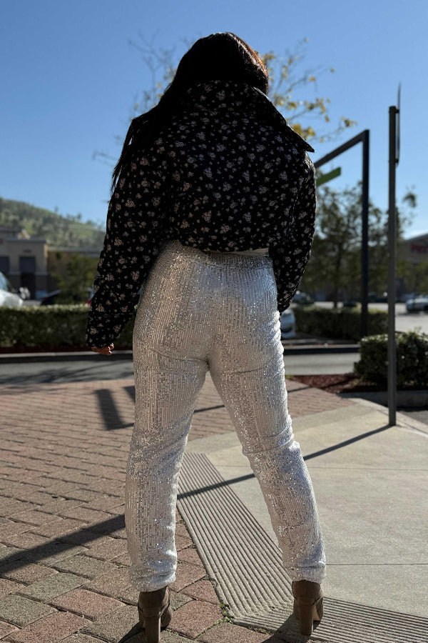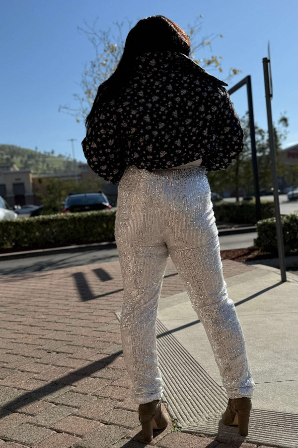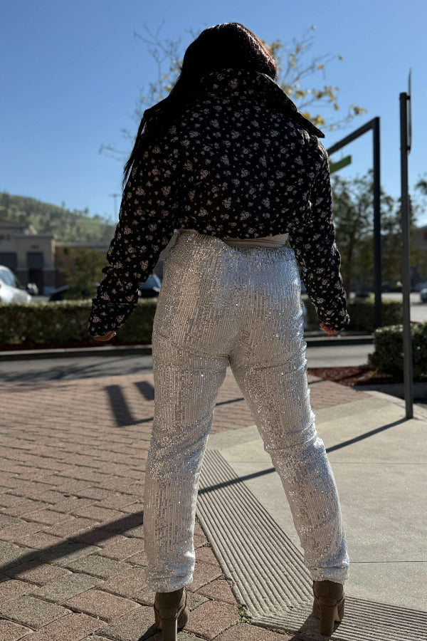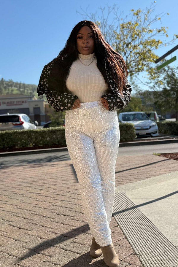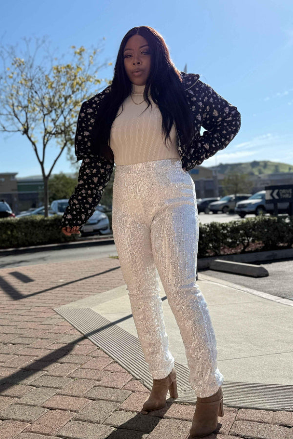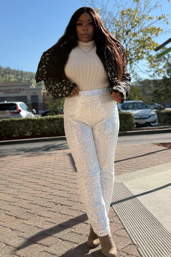 Sequin Skinny Leggings: Stretchy Slim-Fit Fall-Winter Style Keywords: sequin leggings, skinny fit pants, stretchy trousers, sparkly fashion, fall-winter outfit, stylish glam wear, party pants |