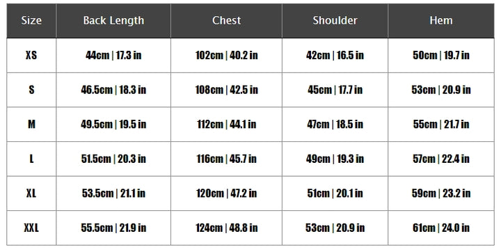 XS, S, M, L, XL, 2XL |