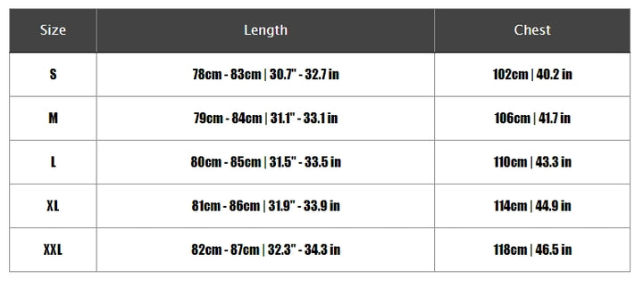 S, M, L, XL, 2XL |