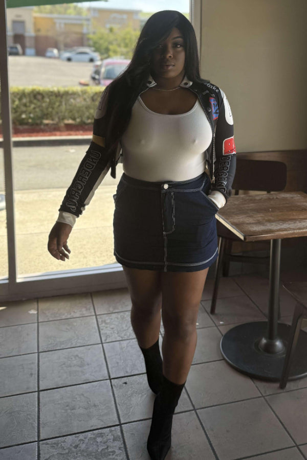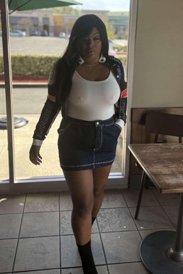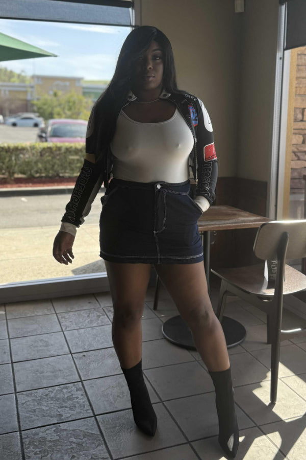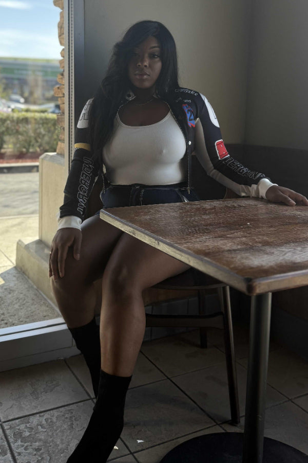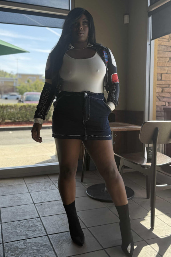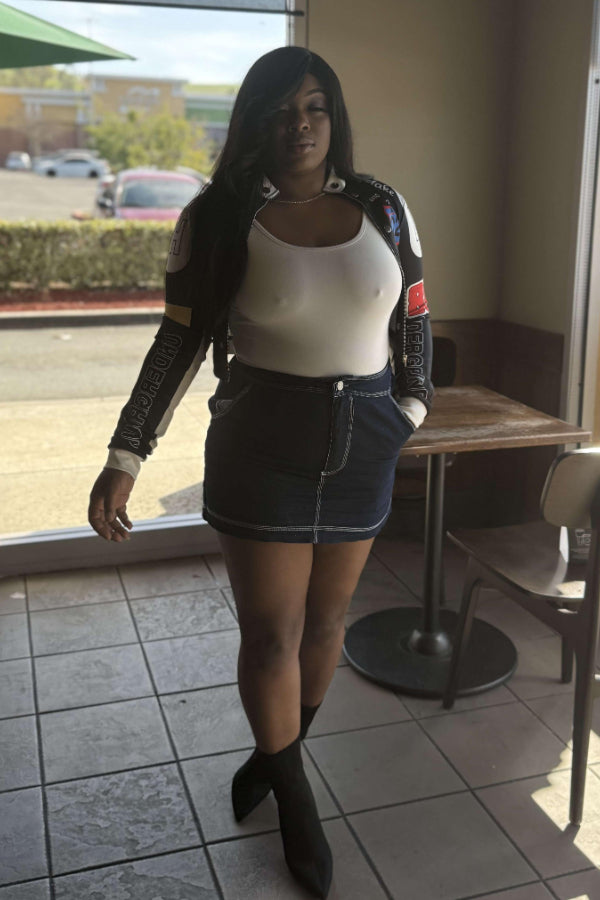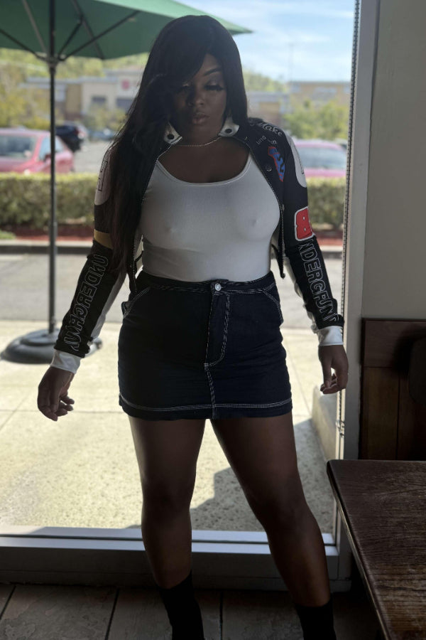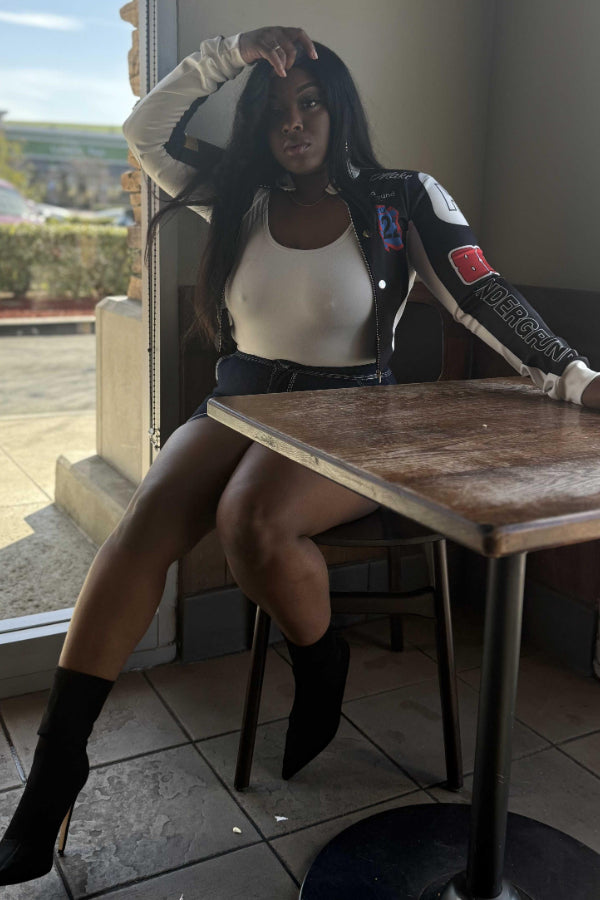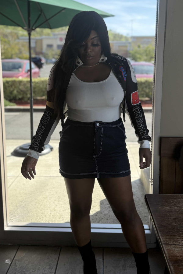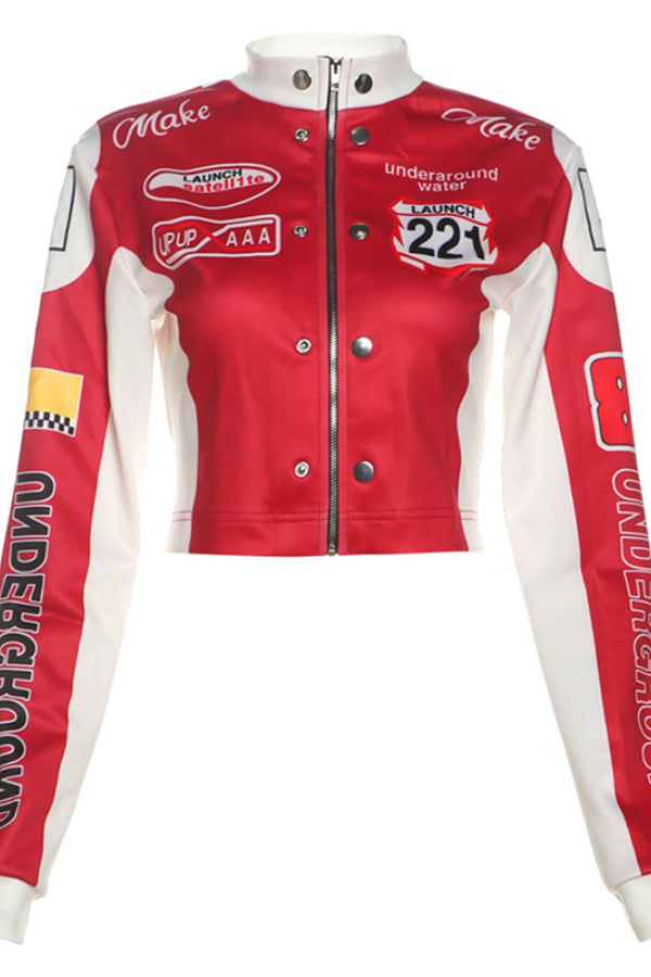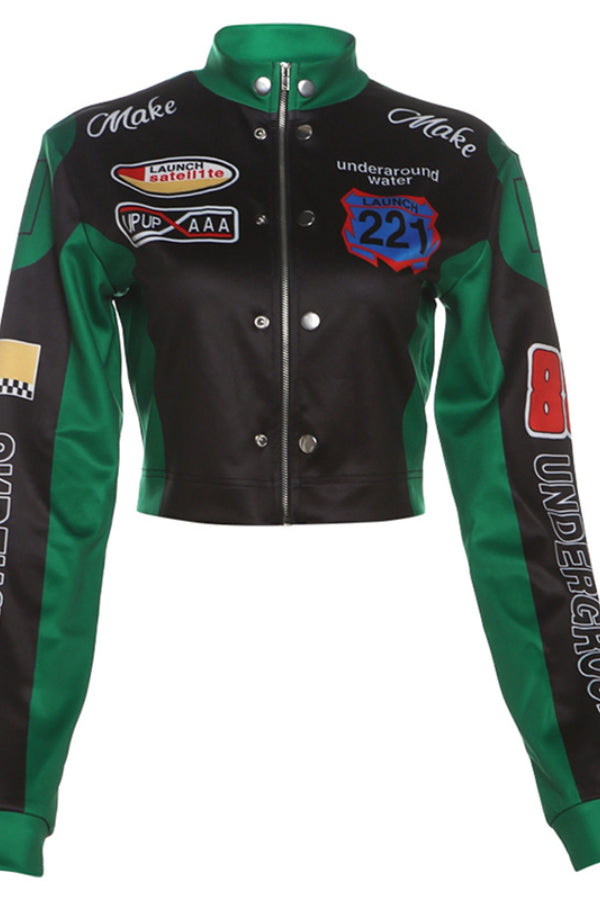 Vintage Print Baseball Jacket: Sexy Crop Design Keywords: vintage baseball jacket, printed jacket, crop jacket, casual sporty jacket, sexy cropped outerwear, athletic fashion |