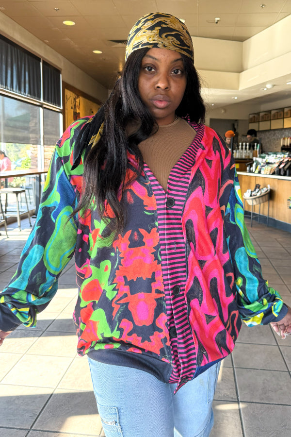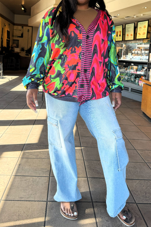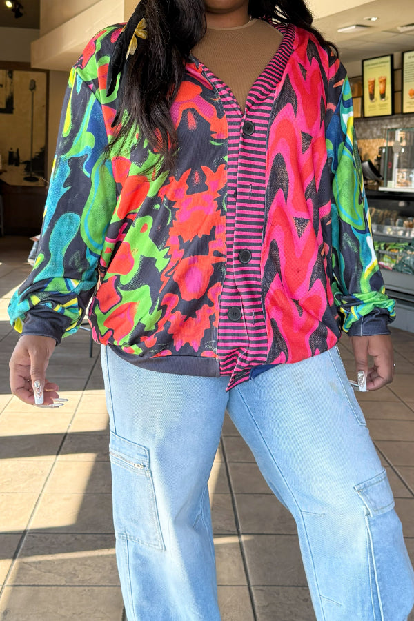 Wool Fleece Jacket: Stylish Print Placement Design Keywords: wool fleece coat, stylish print design, winter outerwear, cozy jacket, trendy warm fashion, casual streetwear, statement coat |